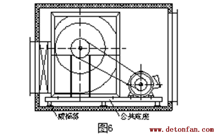 ④在箱內使用減振器時,務必使風機和電機安裝于同一底座上(圖6)。